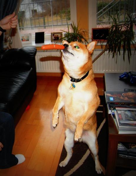 ホットドッグで犬を釣るw