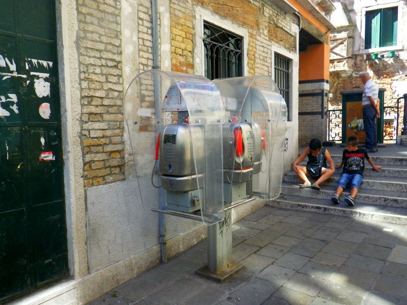 ベネチアの公衆電話と地元の少年達 with a じーちゃん。