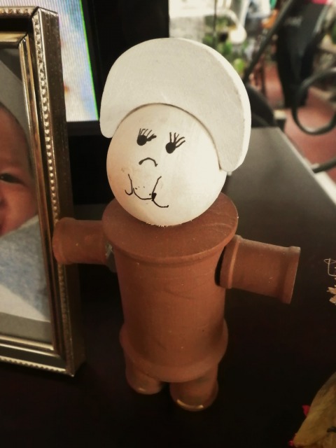 「これ、ピルグリムの女の人だよ。小学校の授業で作ったんだw」