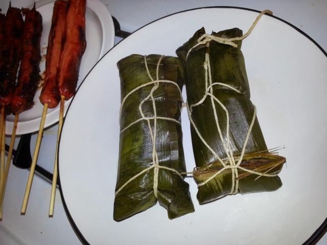 豚肉や鶏肉を混ぜてバナナの葉に包んで茹でるってこと!