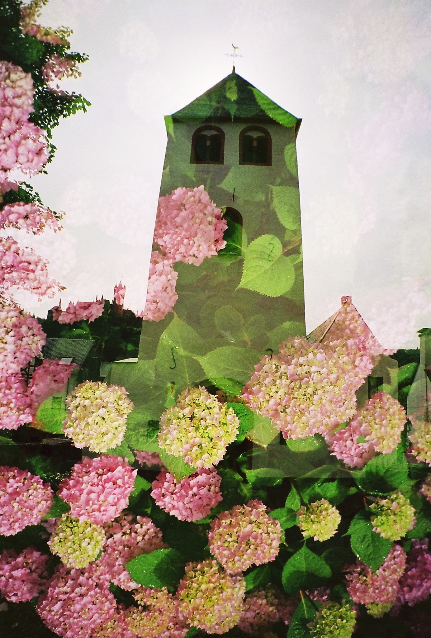 ワイドレンズつけてチャーチみたいなところを撮って、近くに咲いてたアジサイを